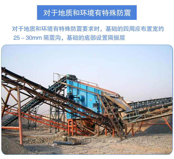 對于地質(zhì)和環(huán)境有特殊防震要求時,基礎的四周應布置寬約 25~30mm 隔震溝,基礎的底部設置隔振層,基礎底部夯實之后,用水泥、煤渣、瀝青鋪設厚度約 200mm,在此隔振層上再澆灌混凝土。