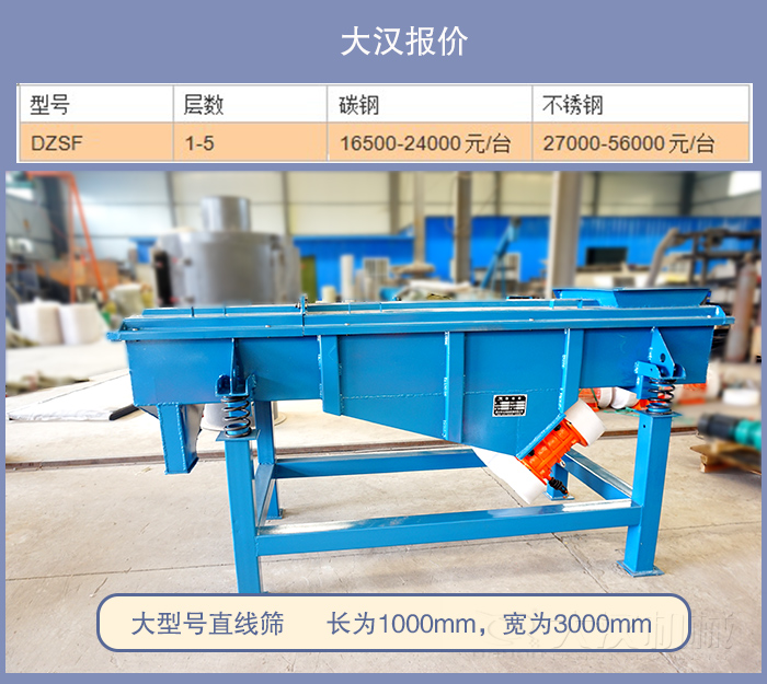 以下是大漢直線篩最新報(bào)價(jià)單,僅供用用戶參考(主要由于材質(zhì)、層數(shù)等影響)