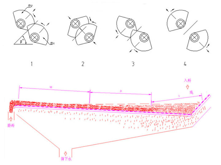 1,為了適應(yīng)不同尾礦性質(zhì)差別,本篩振幅可調(diào),方法是調(diào)整主副偏心塊夾角,從而滿足不同性質(zhì)尾礦的脫水效果。